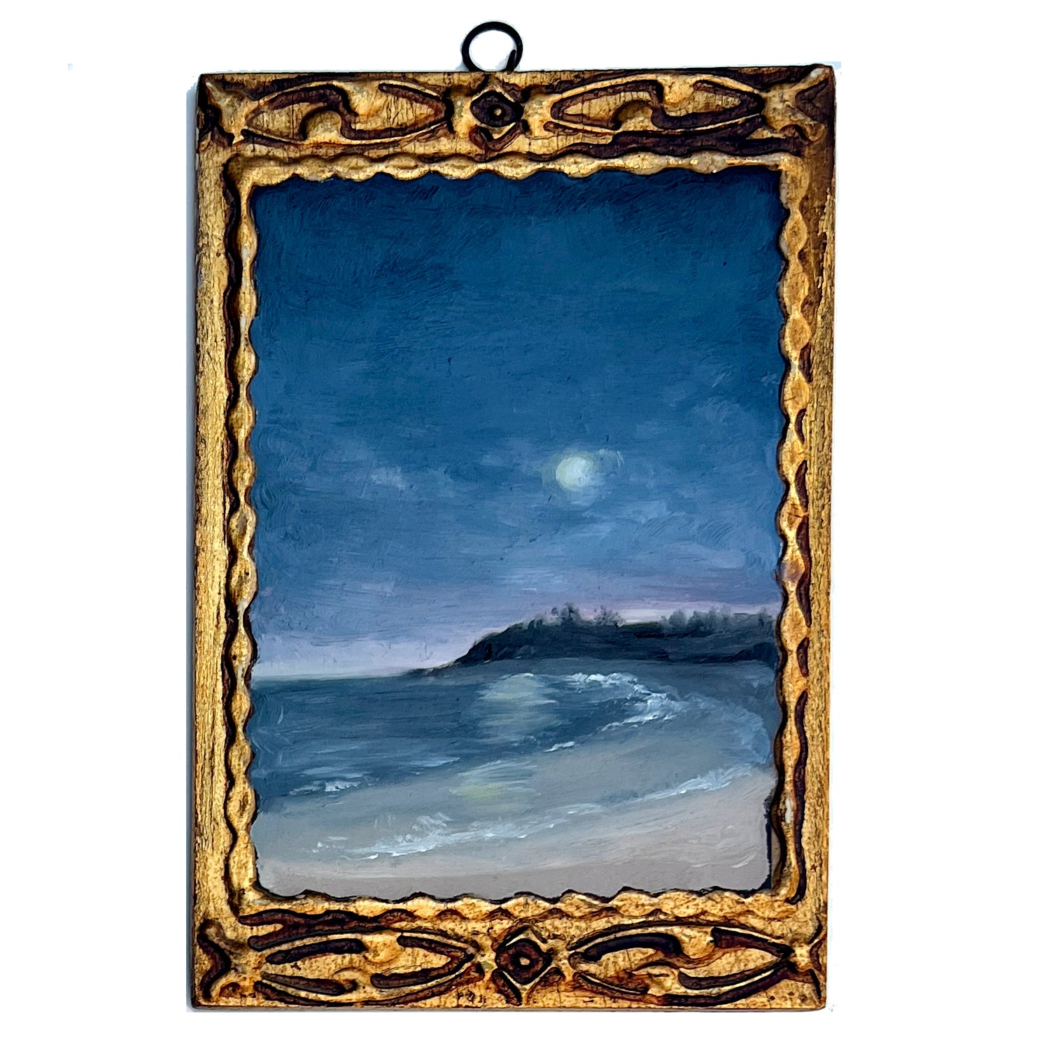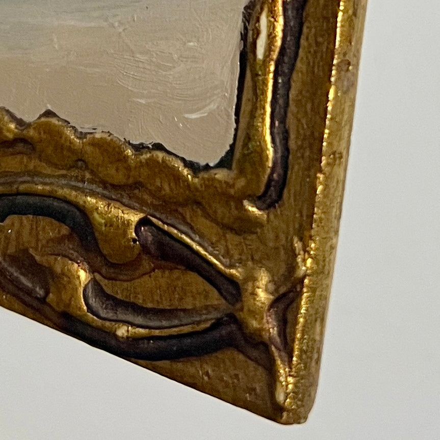Oil painting on vintage Italian plaque with gold trim and edges.